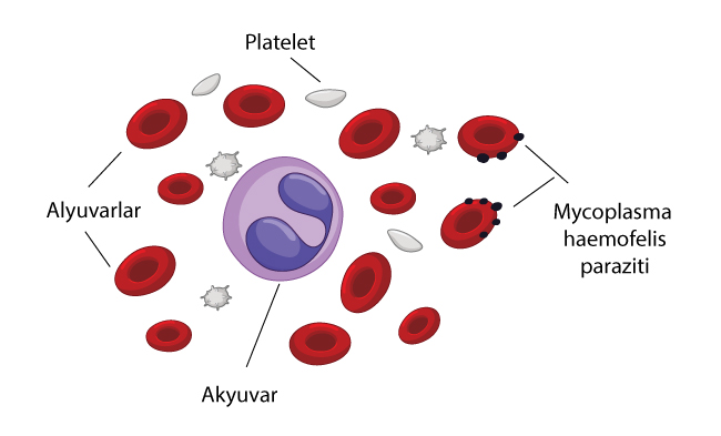 Bu hastalıkta, kedinin kırmızı kan hücreleri, mikroskobik bir kan bakteri paraziti tarafından enfekte olur. Enfekte kırmızı kan hücrelerinin müteakip yıkımı, anemi ile sonuçlanır.