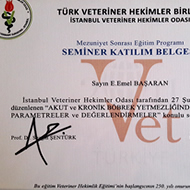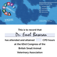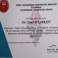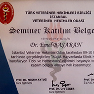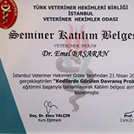 Dr. Emel Başaran İstanbul Veteriner Hekimler Odası, Türkiye Küçük Hayvan Veteriner Hekimleri Derneği, British Small Animal Veterinary Association (BSAVA), International Society of Feline Medicine (ISFM) ve Cornell Feline Health Center (Cornell University) üyesidir.